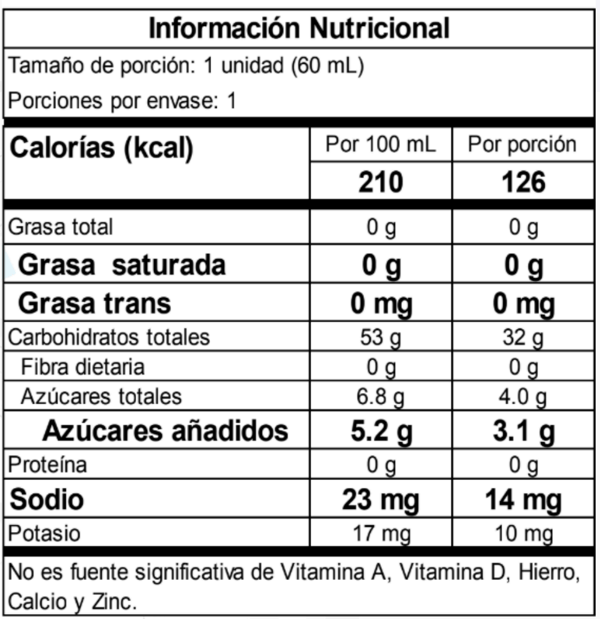 INGREDIENTES: Agua, maltodextrina, dextrina cíclica, fructosa, ácido cítrico (acidulante), sabor arándano (saborizante), cloruro de sodio, benzoato de sodio (conservante), cloruro de potasio, sorbato de potasio (conservante), citrato de sodio